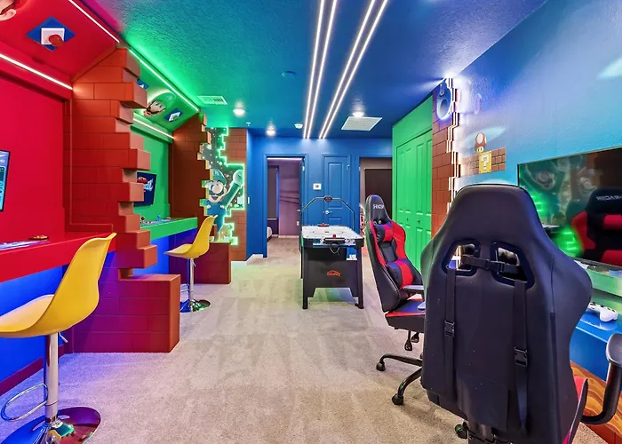 De gesitueerde in Orlando 2025 Brand New 05Bdrms At Windsor Cay Villa Orlando ligt binnen 3 km afstand van Orlando Tickets 4 U en nodigt gasten uit om toeristische bestemmingen te verkennen.